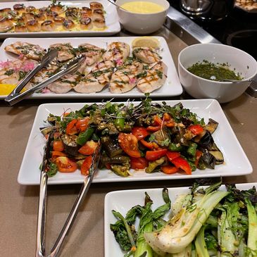 Do you have a big group or prefer a more casual dining experience? Menus are customized with choices of proteins, starch, vegetables, sides and dessert. From Italian, Asian, themed dinners such as taco night, luau, steak house, seafood boils or burgers & bbq options we present your meal at the table in 3 courses, family style or a buffet format and guests serve themselves.