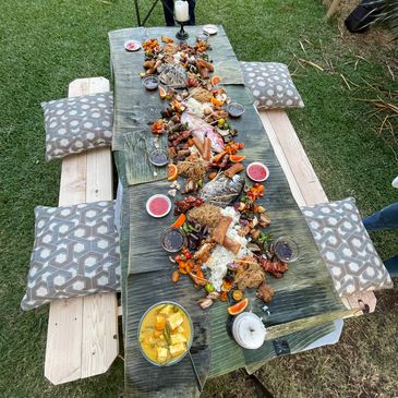 In the Philippines, kamay means "hand" in Tagalog. A Kamayan Feast is an amazing interactive and communal dining experience where you get to eat with your hands! Our chefs prepare and cook an assortment of savory and sweet dishes equal to a 5 course meal that is then served on banana leaves for you to feast on.